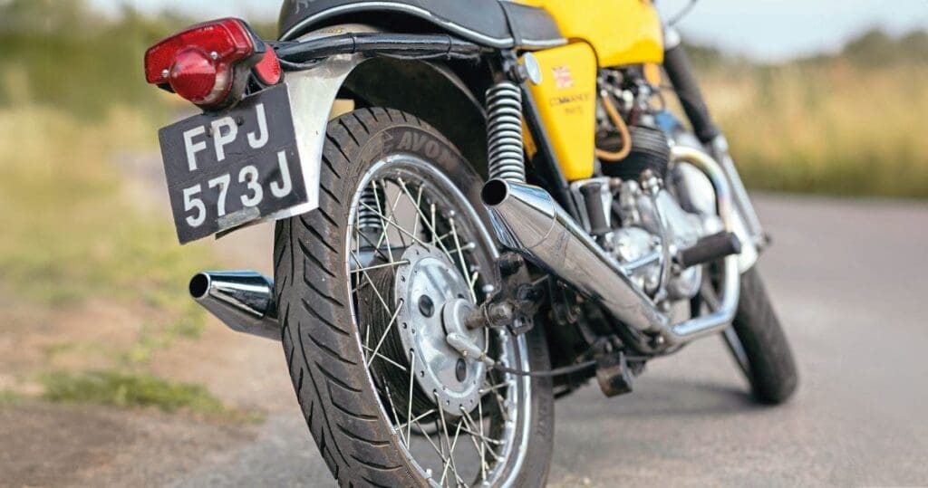 The ‘S’ model’s life was relatively brief, at less than a full two years, as production of it ended in mid-summer 1970, but it played a significant part in the Commando’s evolution. The model split in two directions, the first a one-year-only ‘SS’ 750, with the high-level pipes now one on either side, a smaller headlamp and a bash plate. But the main event, from Feb 1970-on, was the Roadster, essentially an ‘S’ model with a low-level exhaust system – like George’s ‘S’. It went on to be NVT’s best-seller, and in my opinion, deservedly so.