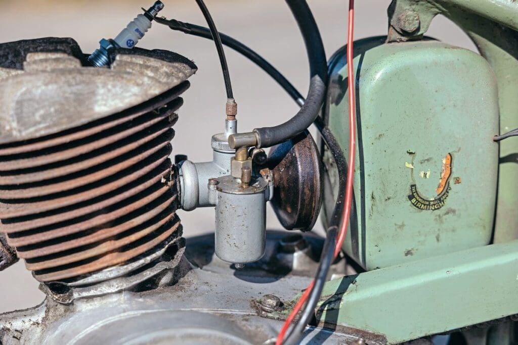 The first thing that strikes you about a Bantam is just how small and light they are; almost bicycle-like in dimension and weight. It makes them incredibly easy to handle, both in and out of the shed. Starting is equally straightforward, even from warm; this example fired up on the second kick with just a tickle of the tiny carburettor. There’s a simple strangler mechanism for colder mornings, but nothing more complicated than that.