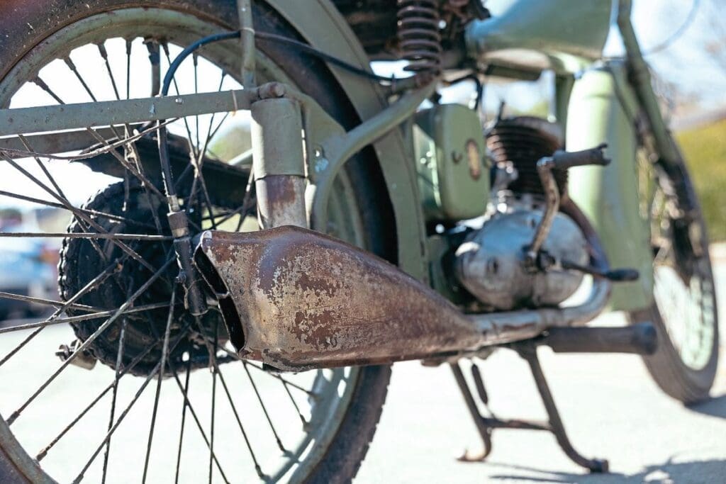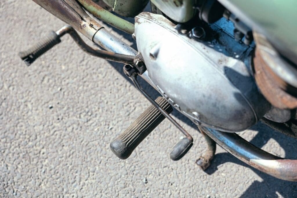 I’ll be honest, though it was positioned front and centre outside the workshop, amongst the ‘recently arrived’ machines waiting for the once-over by Andy’s mechanic Pete, I hadn’t noticed it at all; its size and that austerity Mist Green paint overshadowed and quite literally outshined by the larger, chrome-laden machines around it. What made it so appealing was just that: its completely honest condition.