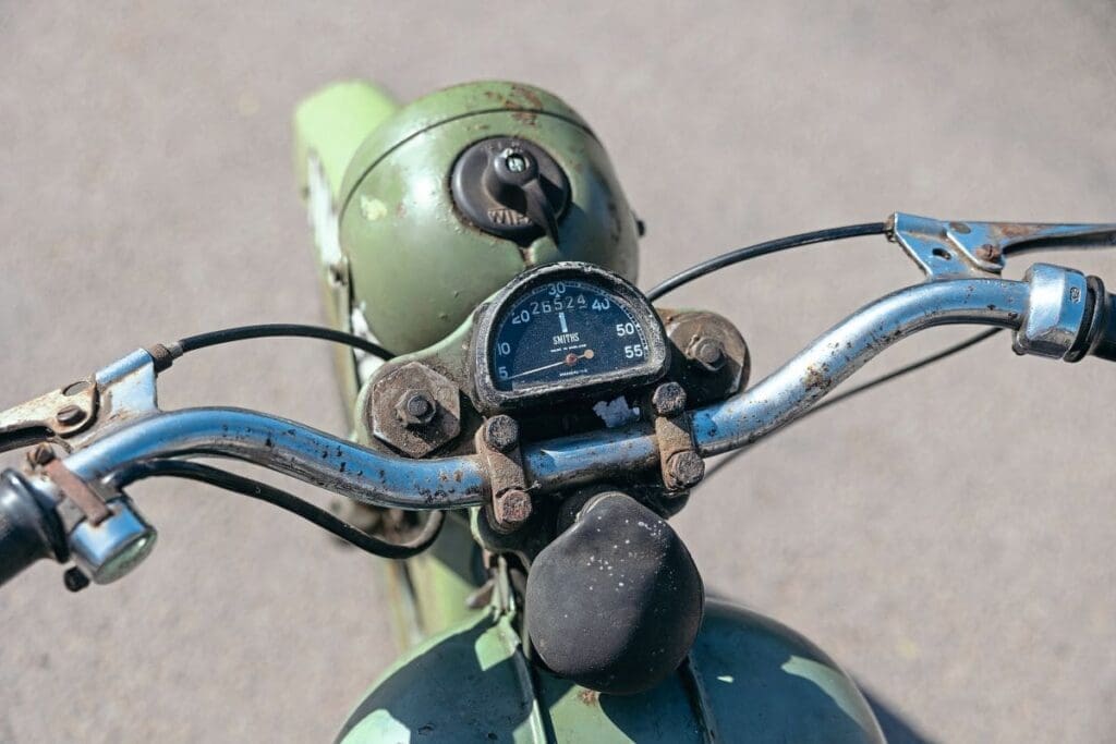There’s absolutely nothing intimidating about a Bantam – any Bantam, really – but the D1 in particular is just an easy thing to get along with. Although this example was clearly showing it had lived a full life, nothing needed a second thought to operate. The clutch was light, the gearbox positive, the brakes adequate and working fine, and the little 123cc unit providing just enough performance to keep pace with modern town traffic and potter along smaller country lanes without any drama whatsoever.