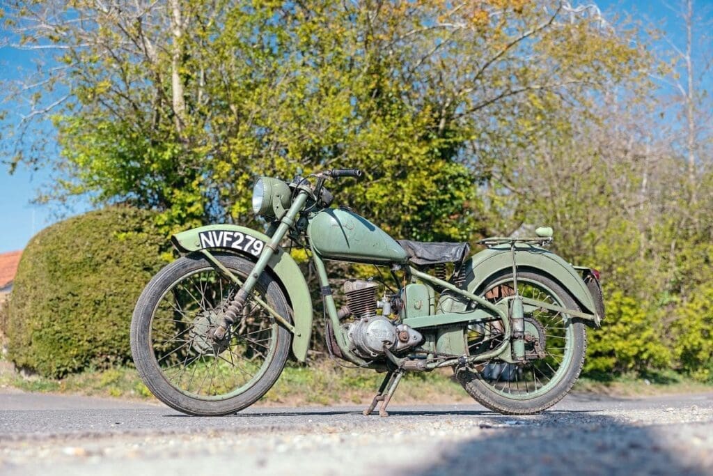 The original 123cc. Started rigid-only, gained plunger rear suspension option in 1950. Various electrical systems available; Wipac AC/DC or Lucas. Dual seat option from 1953. Maroon finish available from 1958 alongside mist green. GPO versions continued to 1965.