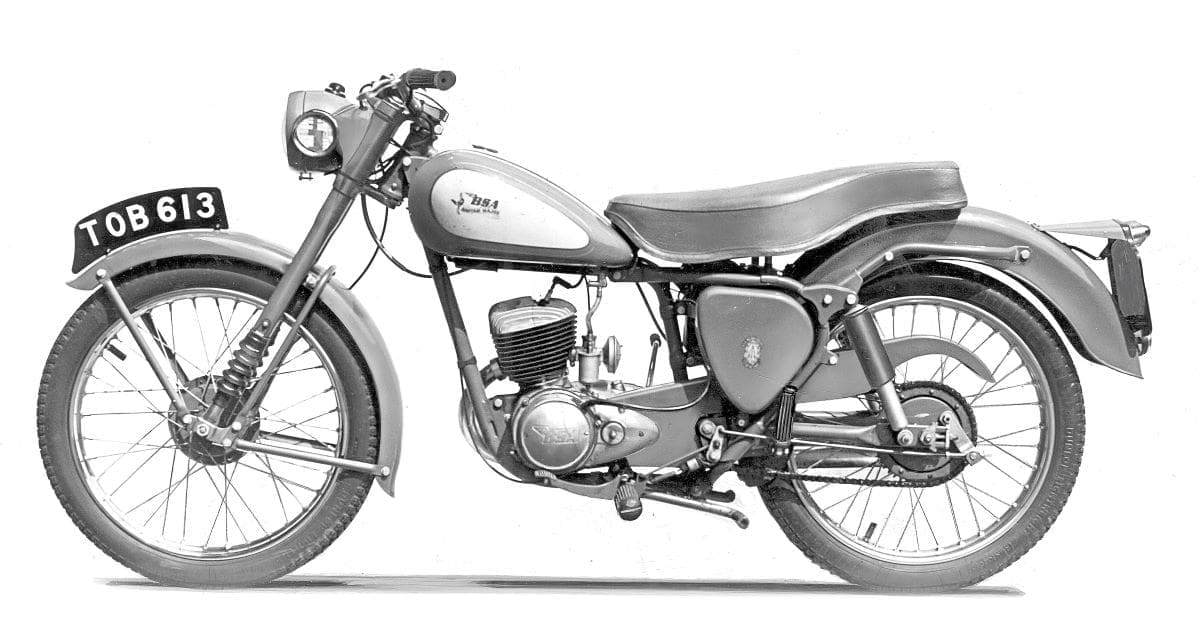 Brief 173cc variant with 7.5bhp. Amal Monobloc carb, two-gallon tank, maroon with ivory panels. One year only – clearly BSA had other ideas brewing.