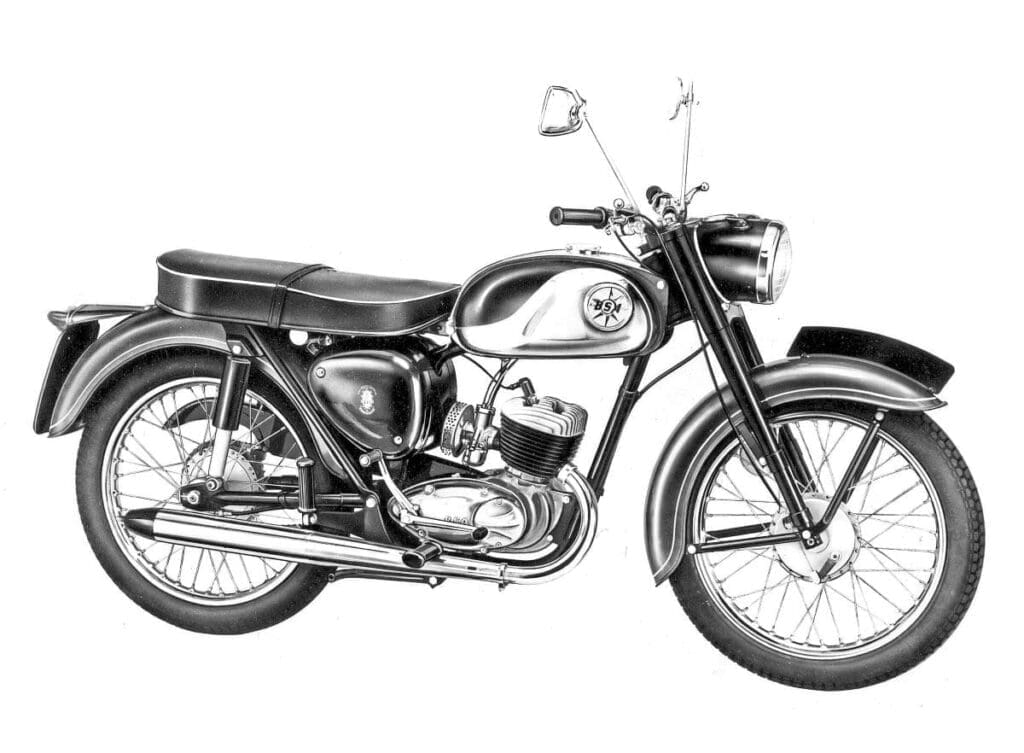 Higher compression again for 12.6bhp, four-speed standard across the range. Heavier forks on Sports/Bushman models. Some reliability issues with flywheel rivets and small-end bearings.